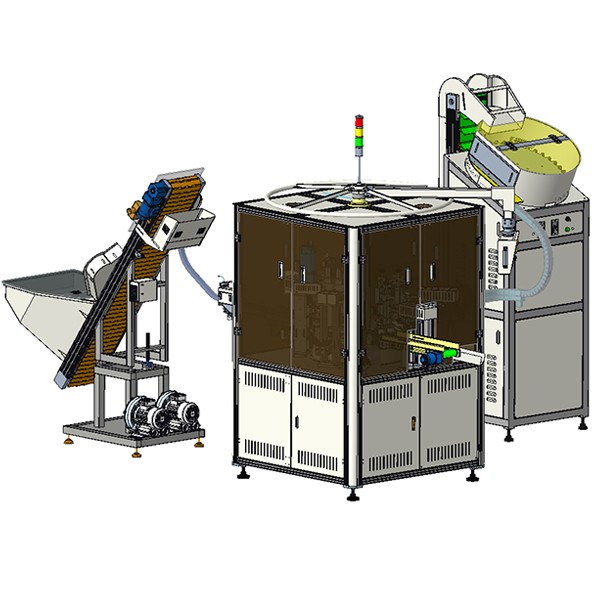 組裝工藝:人工上料至料斗-內(nèi)套理料機(jī)自動(dòng)上料--內(nèi)蓋斜坡理料機(jī)上料-組裝預(yù)旋-普通扭蓋-伺服扭力擰蓋-成品下料