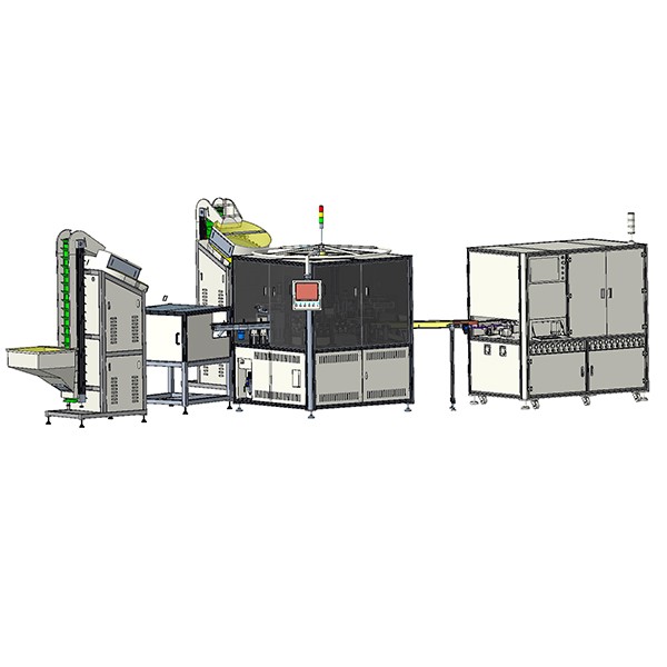 內(nèi)道:外鋁蓋理料機(jī)上料-二維碼讀碼關(guān)聯(lián)-點(diǎn)膠-組裝-沖壓檢測(cè)-成品下料-半成品下料